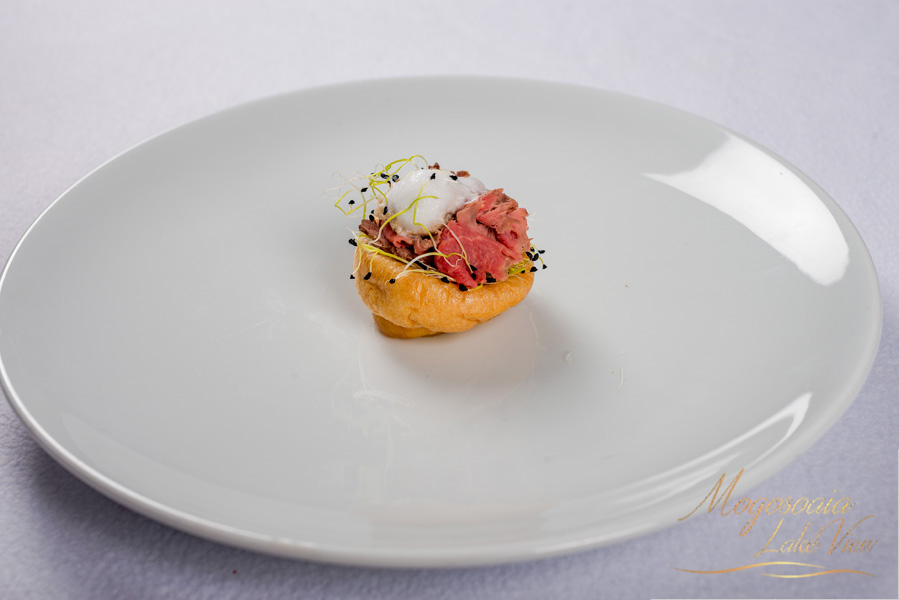 Mini yorkshire pudding cu roast beef si spuma de hrean